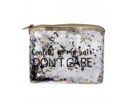 Kosmetická taštička z průhledného plastu s barevnými třpytkami a zlatým zipem. Praktický pomocník do každé dámské kabelky.