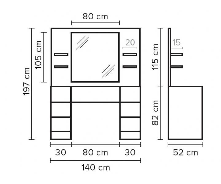 Barber obsluha Hairway Barry s elegantním dřevěným dekorem imitace ořechu je skvělou volbou do pánského holičství. Poskytuje dostatek úložného prostoru díky sedmi zásuvkám a čtyřem poličkám po stranách zrcadla, ideálních pro uspořádání přípravků na vlasy, vousy a holičských nástrojů. Kvalitní provedení a dostatečně prostorná pracovní deska zajišťují pohodlí při obsluze jednoho zákazníka.
