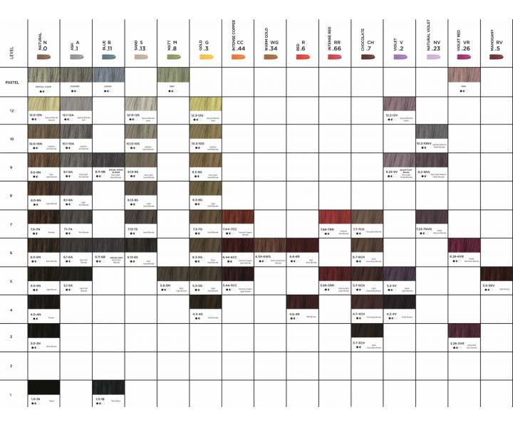 - 50-100 % šedivých vlasů - poměr míchání barvy je 1:1 (1 díl z řady .0, .3 nebo .7 + 1 díl požadované barvy)