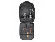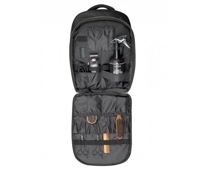 Batoh pro barber pomůcky a přípravky k holení vousů a střihání vlasů. Batoh má nastavitelné popruhy. Přední přihrádka slouží pro uložení nůžek, hřebenů, kartáčů, nůžek, břitev a jiných pomůcek. Zadní přihrádka je určena pro pomůcky větších rozměrů. Batoh obsahuje 2 ochranné sáčky na pomůcky.