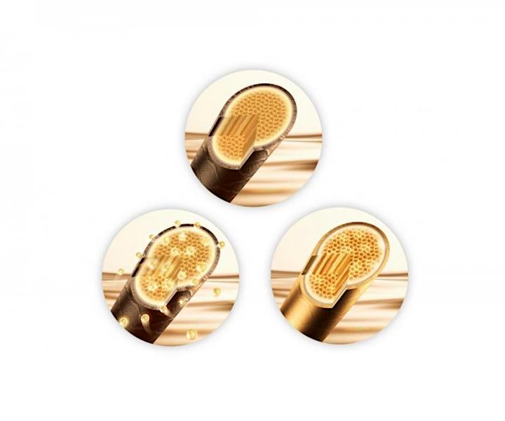 Keratin - vyplňuje poškozená místa ve vlasové struktuře, vlasy jsou díky obnovení poškozených míst pevnější, odolnější a méně lámavé