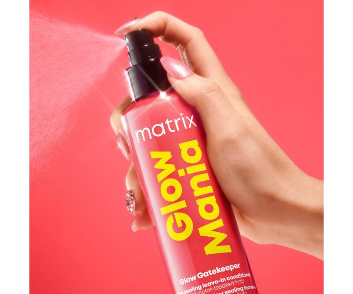 Pečujte o zářivý lesk svých vlasů pomocí bezoplachového kondicionéru Matrix Glow Mania Glow Gatekeeper Leave-in Conditioner, který uzamyká zářivost barvy a dodává ochranu před každodenními nepříznivými vlivy. Je vhodný pro všechny typy barvených vlasů, zejména pro matné vlasy se ztrátou lesku. Poskytuje ochranu proti krepatění, vlhkosti a také tepelnou ochranu až do 230 °C, což z něj činí ideálního pomocníka při fénování, žehlení a dalších stylingových technikách. Účinná dvojice aktivních látek – kyselina glykolová (nejjemnější z AHA kyselin) a šípkový olej – zajišťují dlouhotrvající zářivou barvu. Oživující a pečující lehká textura v podobě mléčné konzistence proniká do vlasových vláken pro okamžitý efekt bez zatížení. Usnadňuje rozčesávání, zanechává vlasy hebké, snadno upravitelné a dodává jim okamžitý oslnivý lesk. Má jemnou citrusovou vůni s květinovými a sladkými podtóny. Výsledkem jsou hladké, hedvábné a zdravě vypadající vlasy, které doslova září zdravím a krásou.