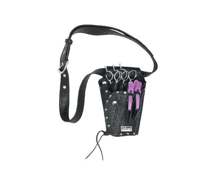 Profesionální brašna Sibel z velmi kvalitní umělé kůže se vzorem krokodýla na nůžky má jednu větší přihrádku a pět menších přihrádek včetně variabilního popruhu kolem pasu. Hlavní kapsa brašny se zapíná drukem a koženkovou tkaničkou. Malé kapsičky jsou odepínací, můžete si zvolit volný počet kapsiček. Brašna má elegantní design a je velice prostorná, proto si ji oblíbí každý kadeřník.