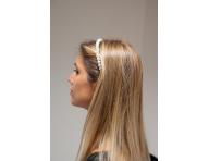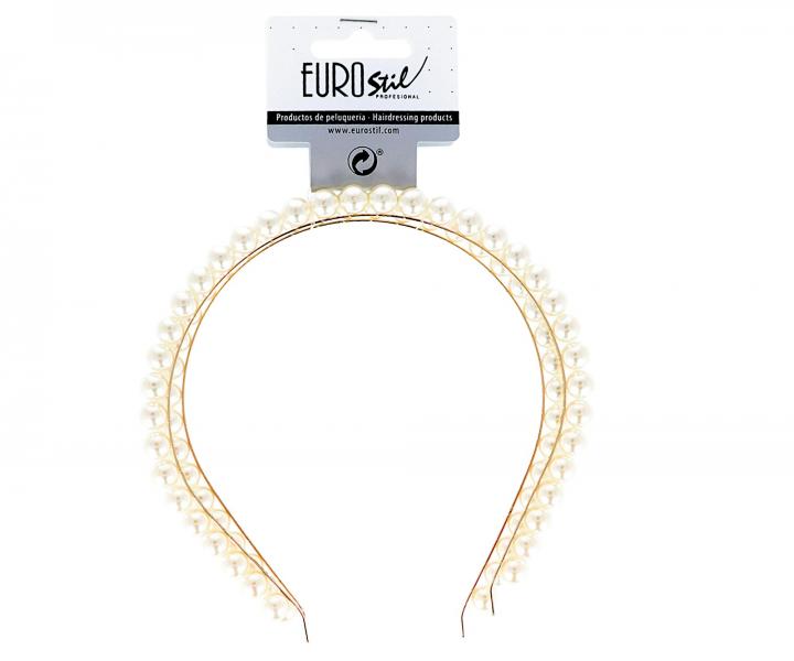 Čelenka do vlasů Eurostil Professional ve zlaté barvě zdobená perlami je skvělým doplňkem Vašeho účesu. Čelenka je vyrobena z kvalitního kovového materiálu, snadno se přizpůsobí tvaru hlavy a lze ji tak pohodlně nosit celý den bez nepříjemného tlačení. V balení jsou dvě čelenky.