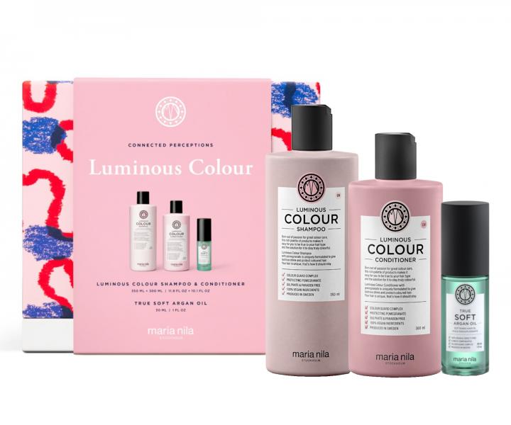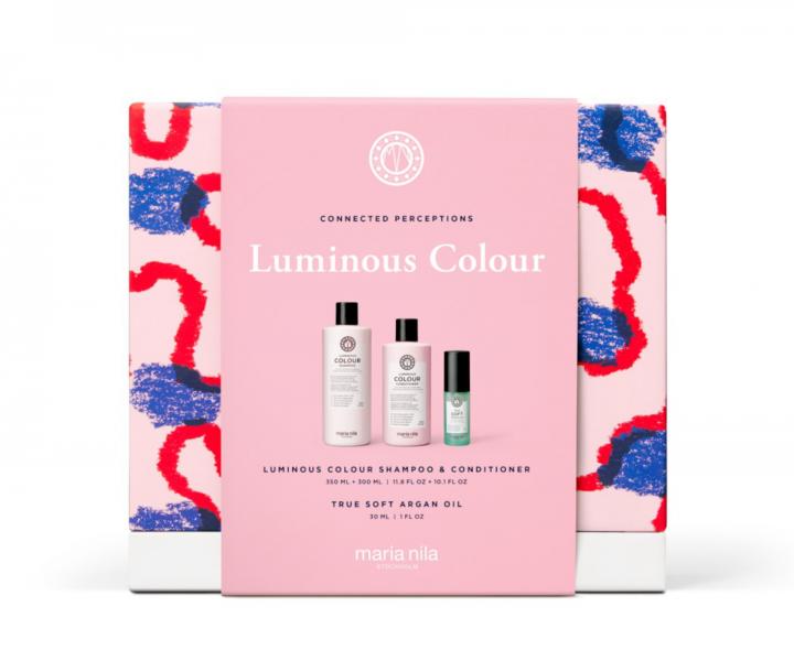 Udělejte radost sobě nebo svým blízkým dárkovou sadou pro barvené vlasy Maria Nila Luminous Colour, ve které najdete: