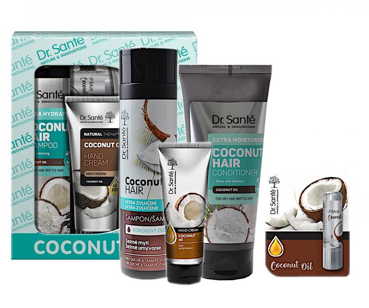 | Řada pro křehké a suché vlasy Dr. Santé Coconut Typ: sada - šampon + péče + balzám na rty |