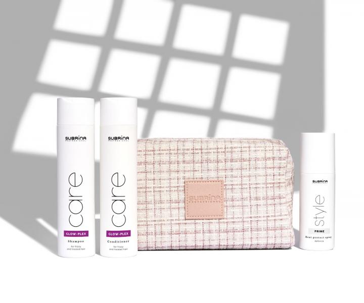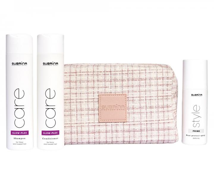 | Řada pro hydrataci a lesk vlasů Subrina Professional Care Glow-Plex Typ: dárková sada - šampon + kondicionér + lamelární voda + kosmetická taštička |