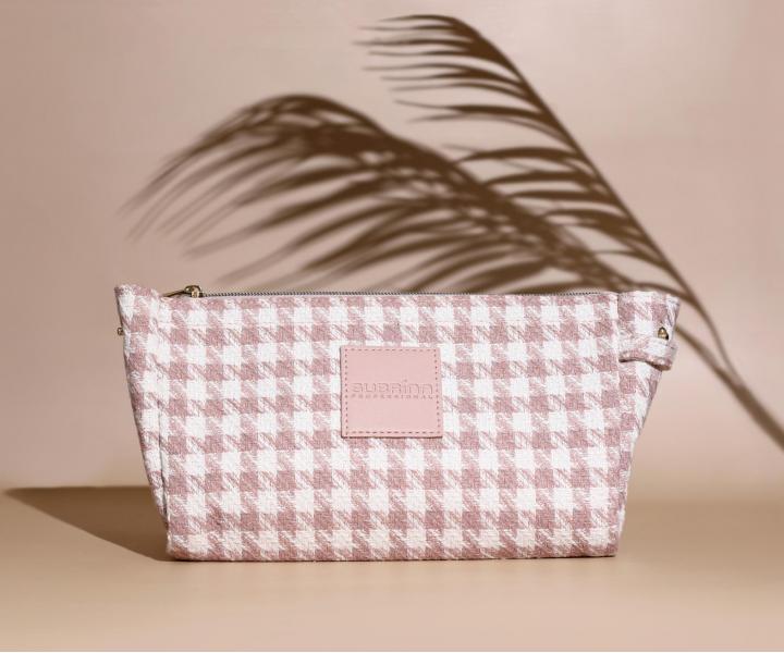 Kosmetická taška je elegantní a praktický doplněk pro každou ženu. Je vyrobena z kvalitního materiálu s lehce třpytivým vzorem, což jí dodává nadčasový vzhled. Tašku lze zvětšit nebo zmenšit pomocí cvoků na stranách. S dostatečným prostorem pro Vaše oblíbené vlasové produkty je tato taška ideálním společníkem na cesty nebo každodenní použití.