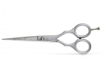 Efilační nůžky Kiepe Luxury Premium Silver 5,5" pro praváky jsou vyrobeny z nerezové tvzené oceli Aisi 420. Nůžky mají čepele naostřené systémem „Diamond Sharp“. Pro kvalitní pracovní komfort mají nůžky ergonomický tvar, odnímatelné vnitřní pryžové kroužky a malíkovou opěru. Pro regulaci čepelí slouží středově regulovatelný šroub.