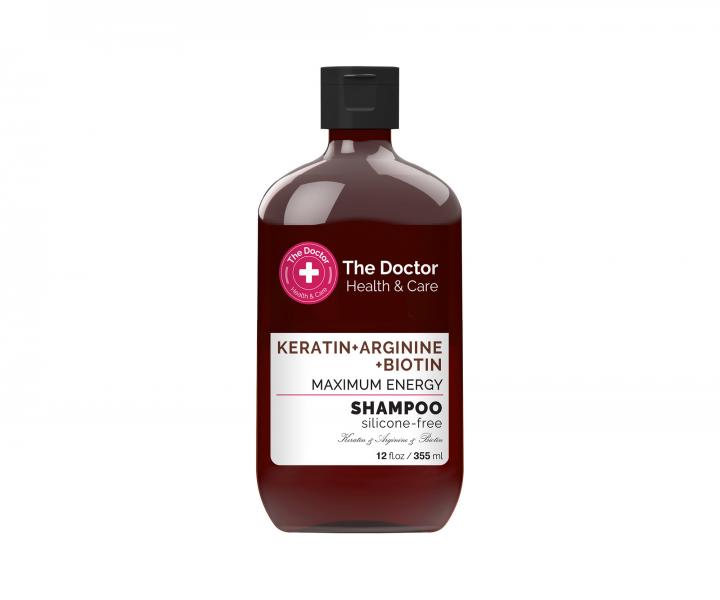 Energizující šampon The Doctor Keratin+Arginine+Biotin jemně čistí vlasy i pokožku hlavy, posiluje slabé a mastné vlasy a dodává jim hebkost a lesk. Šampon obsahuje vyvážený komplex keratinu, argininu a biotinu, který připravuje vlasové vlákno pro lepší příjem živin a vyplňuje mezery ve struktuře vlasu. Šampon neobsahuje silikony.