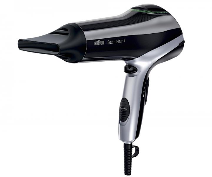 Fén na vlasy Braun Hair Satin 7 Iontec HD 730 s výkonem až 2200 W zajistí velmi šetrné vysoušení vlasů díky funkci Iontec a Satin Protect. Funkce Iontec je technologie chránící zdraví vlasů díky proudu iontů, které vlasy zklidňují, eliminují statickou elektřinu, zanechávají vlasy lesklé a hydratované. Tuto funkci snadno zapnete pomocí posuvného tlačítka na vrchní straně těla fénu a o její aktivaci informuje LED dioda. Funkce Satin Protect pak chrání vlasy před přesušováním a uchovává ve vlasech přirozenou vlhkost a to díky snížení teploty za současného zachování rychlosti vzduchu. Tuto funkci snadno zapnete posuvným tlačítkem na vnitřní straně rukojeti fénu. Fén má možnost nastavení dvou rychlostí vzduchu a třech teplot vzduchu pomocí posuvných tlačítek na vnější straně fénu. Pro zafixování účesu je fén vybaven tlačítkem studeného vzduchu. Pro snadné čištění a údržbu lze odejmout zadní filtr. Součástí balení je vzduchová tryska a difuzér.