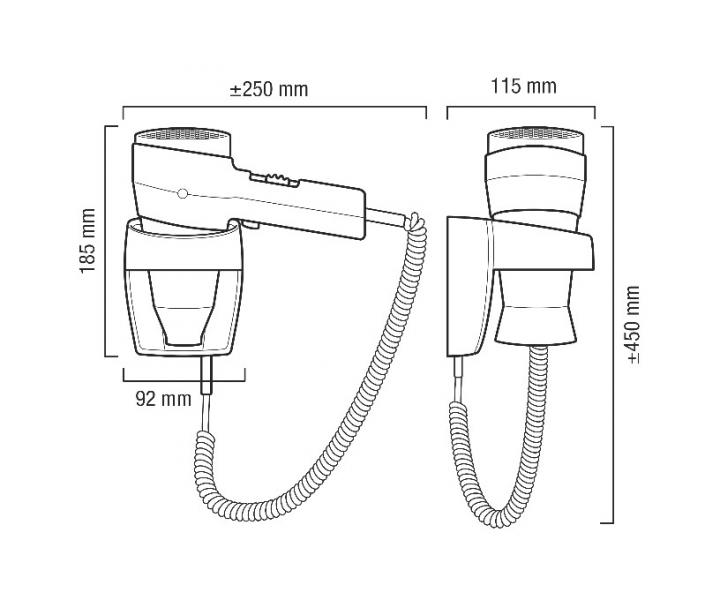 Fén na vlasy Valera Executive Super, s připevněním na stěnu, je vhodný do hotelů, lázní wellness a jiných rekreačních center. Fén má bezpečnostní vypínač na držáku na zeď. 2 nastavitelné teploty a rychlosti vzduchu, studený vzduch pro zafixování účesu.