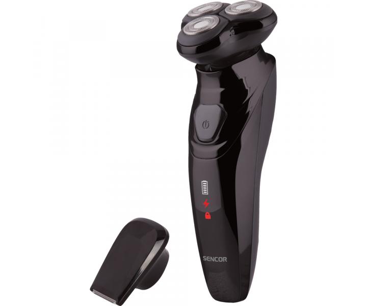 Holicí strojek na vousy Sencor má ergonomickou rukojeť, díky které skvěle padne do ruky. Strojek má tři na sebe nezávislé výkyvné hlavy s holicími břity z nerezové oceli pro snadné oholení bez podráždění. Strojek disponuje také funkcí SafetyLock, která zabrání nechtěnému spuštění strojku. Pro snadnější čištění lze strojek omýt pod tekoucí vodou. Součástí balení je také zastřihovací nástavec pro úpravu fousů, kotlet, knírku apod. Doba provozu strojku na jedno plné 90 minutové nabití je až 60 minut.