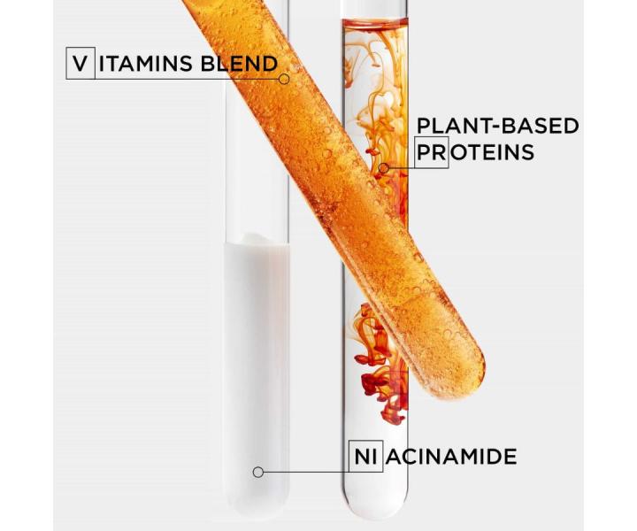 Niacinamid - derivát vitaminu B3, uzavírá ve vlasech výživné látky, posiluje ochrannou bariéru vlasových vláken a udržuje jejich dlouhodobé zdraví
