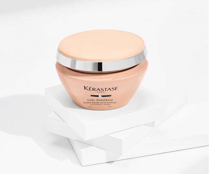 Hydratační vyživující maska Kérastase Curl Manifesto je dokonalou kombinací vědy a luxusu. Řada Curl Manifesto obsahuje ty nejefektivnější ingredience pro vyživení a posílení vlnitých, kudrnatých a afro vlasů. Jedná se o profesionální péči podporující přirozenou texturu vlasů a díky tomu budou při pravidelném používání o 73 % hydratovanější, o 81 % více definované a o 99 % méně náchylné k lámavosti. Extra bohatá vyživující ošetřující maska obohacena o manukový med a ceramidy má bohaté složení, která intenzivně vyživuje a posiluje křehké, poškozené kadeře, čímž důsledně předchází lámání. Kučery zanechává hedvábně jemné a podporuje pružnost vlasů.