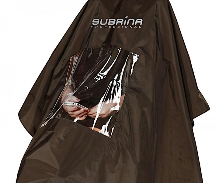 Profesionální kadeřnická pláštěnka Subrina Professional je vhodná na barvení vlasů. Pláštěnka má na přední straně průhledné okno, které umožňuje zákazníkovi například používat mobilní telefon v průběhu barvení. Pláštěnka má zapínání kolem krku na háčky. Nad průhledným oknem je vytištěno stříbrné logo značky. Pláštěnka je vyrobena z polyesteru a má rozměry 115 x 130 cm.