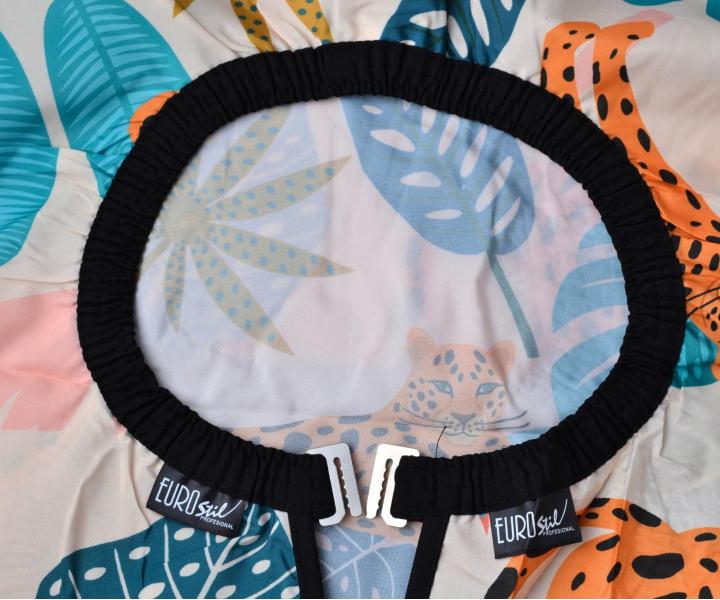 Kadeřnická pláštěnka na stříhání Eurostil Professional máme v nabídce ve více variantách - barevné provedení ananas, boho, etnico, fialová s puntíky, geometrický vzor, květinový vzor, leopard, oranžovo-růžová, pejsek, safari a zebra. Na této straně naleznete přehled všech verzí - parametrem členění je barevné provedení. Kadeřnická pláštěnka na stříhání Eurostil Professional v prodeji od 299,- Kč do 375,- Kč.