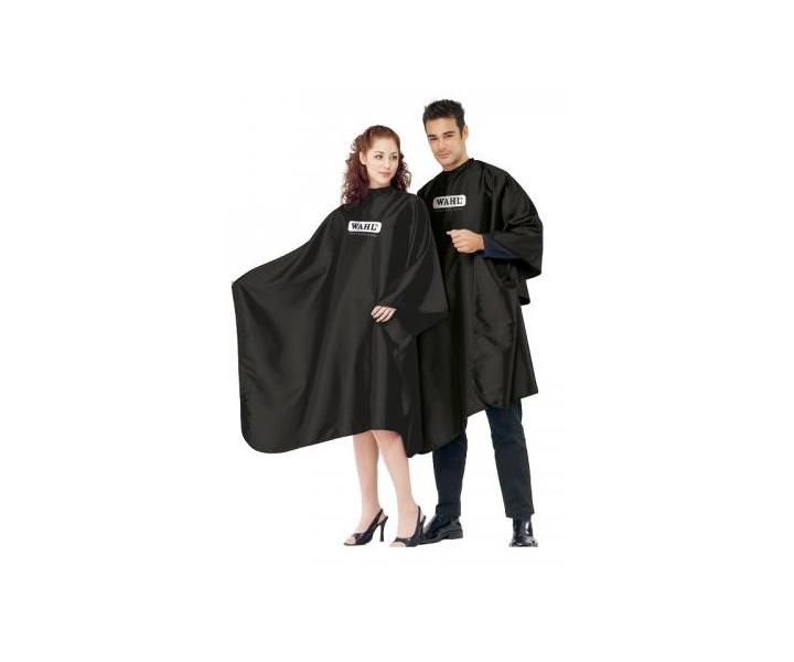 Profesionální kadeřnická pláštěnka Wahl 0092-0141 na stříhání s upevněním na suchý zip se stříbrným nápisem výrobce. Barva: černá Materiál: 100% polyester Rozměr: 135x150 cm Vlastnosti: - profesionální kadeřnická pláštěnka - ideální na stříhání - zapínání na suchý zip - antistatická a voděodolná - nemačká se