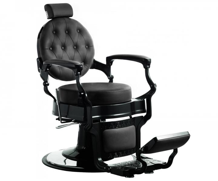 Luxusní kadeřnické barber křeslo Hairway Romeo v celočerném provedení s kovovou konstrukcí dodá tu správnou atmosféru každému barbershopu. Křeslo má sklopnou opěrku zad až na 145 °, sklápění je zajištěno pomocí páky na boku křesla. Komplex prvků, jako je nastavitelná a odnímatelná opěrka hlavy, polstrované područky, nožní opěrka a celkové měkké polstrování, zajišťují maximální pohodlí zákazníka. Pevná opěrka nohou je synchronní se sklopnou opěrkou zad, větší pohodlí v poloze vleže pak zajišťuje polstrovaná skládací opěrka nohou. Křeslo má výškově nastavitelný sed pomocí hydraulického pístu s možností jeho otáčení i uzamčení. Vysoce kvalitní umělá koženka křesla usnadňuje údržbu křesla. Stabilitu celému křeslu dodává pevná kulatá základna o průměru 67 cm.