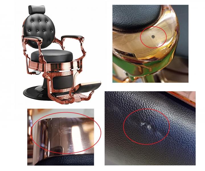 Zboží má drobné povrchové vady - škrábance a vady povrchu na různých místech kovové konstrukce a poškozenou koženku na opěradle. Jedná se pouze o kosmetické vady, které nemají vliv na funkci a používání křesla. Obrázky jsou pouze orientační, každé křeslo má jiné vady.