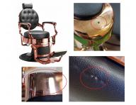 Zboží má drobné povrchové vady - škrábance a vady povrchu na různých místech kovové konstrukce a poškozenou koženku na opěradle. Jedná se pouze o kosmetické vady, které nemají vliv na funkci a používání křesla. Obrázky jsou pouze orientační, každé křeslo má jiné vady. Luxusní kadeřnické barber křeslo Hairway Romeo v černém provedení se zlatou ko... více »