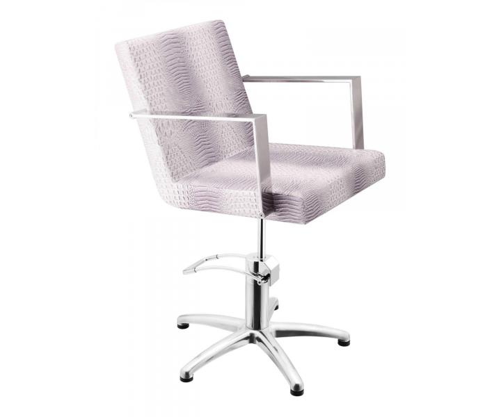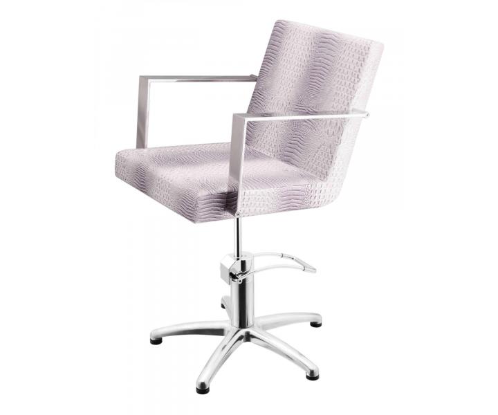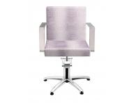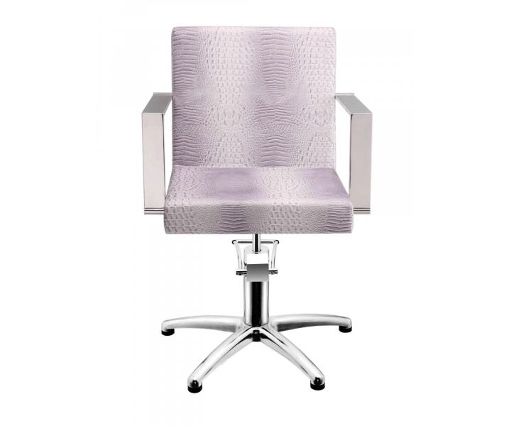 Elegantí kadeřnické křeslo v designu krokodýlí kůže. Křeslo otočné o 360° s hydraulickou pumpou. Polstrování křesla z umělé kůže pro komfortní pohodlí zákazníka. Křeslo sedí na elegantní chromové základně.