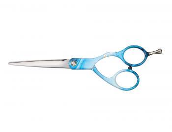Kadeřnické nůžky Fox Color Blue 5,5" pro praváky mají velký středový šroub se vsazeným kamenem. Mají bílý teflonový povrch a jsou vhodné pro klouzavou techniku střihu (sliding). Díky ergonomickému tvarování se velmi pohodlně drží v ruce a práce s nimi je opravdu snadná.