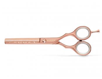 Kadeřnické nůžky Kiepe Luxury Premium Copper 6" pro praváky jsou vyrobeny z nerezové tvzené oceli Aisi 420. Nůžky mají čepele naostřené systémem „Diamond Sharp“. Pro kvalitní pracovní komfort mají nůžky ergonomický tvar, odnímatelné vnitřní pryžové kroužky a malíkovou opěru. Pro regulaci čepelí slouží středově regulovatelný šroub.