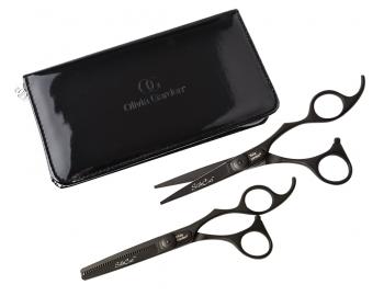 Sada kadeřnických nůžek 5,75" a efilačních nůžek 6,35" Olivia Garden SilkCut Pro Matt Black