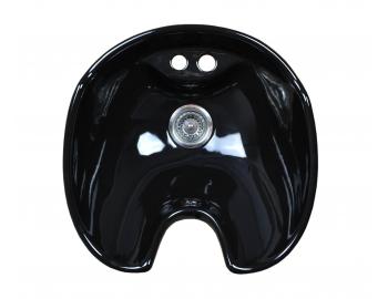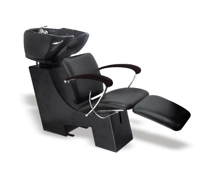 Luxusní kadeřnický mycí box Hairway Gustav v elegatním černém designu a dřevěnými černými područkami. Křeslo s anatomicky tvarovaným polstrováním potažené umělou kůží poskytuje komfortní pohodlí zákazníka.