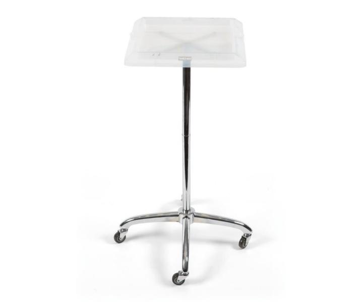 Profesionální kadeřnický odkládací stolek Sibel s pracovní plochou a dvěma držáky na štětce je velmi praktický a dobře omyvatelný. Odkládací plocha je vyrobena z kvalitního nerozbitného plastu, který se velmi dobře udržuje.