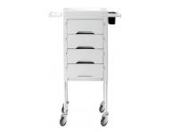 Kadeřnický vozík Sibel Secret v krémové barvě je praktickým a nepostradatelným pomocníkem kadeřnického salónu. Má 4 prostorné zásuvky. Nechybí ani praktické držáky nástrojů, které lze zasunout do rámu. Tento vozík Vám poskytne komfort pro Vaší práci. Díky pojizdným kolečkům můžete vozík přemístit kamkoliv budete potřebovat.