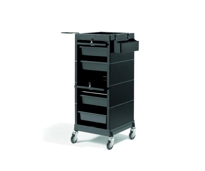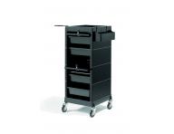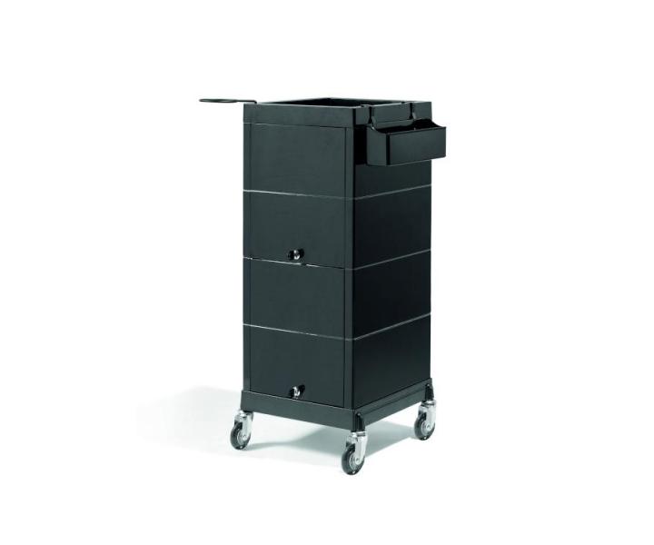 Kadeřnický vozík Sibel Discrete/Lock v černé barvě je praktickým a nepostradatelným pomocníkem kadeřnického salónu. Má 4 praktické zásuvky, držák na fén a praktický držák nástrojů, který lze zasunout do rámu. Zásuvky lze uzavřít a uzamknout dvěma posuvnými dvířky s magnetickým uchycením. Tento vozík Vám poskytne komfort pro Vaši práci. Díky pojízdným kolečkům můžete vozík přemístit kamkoliv budete potřebovat.