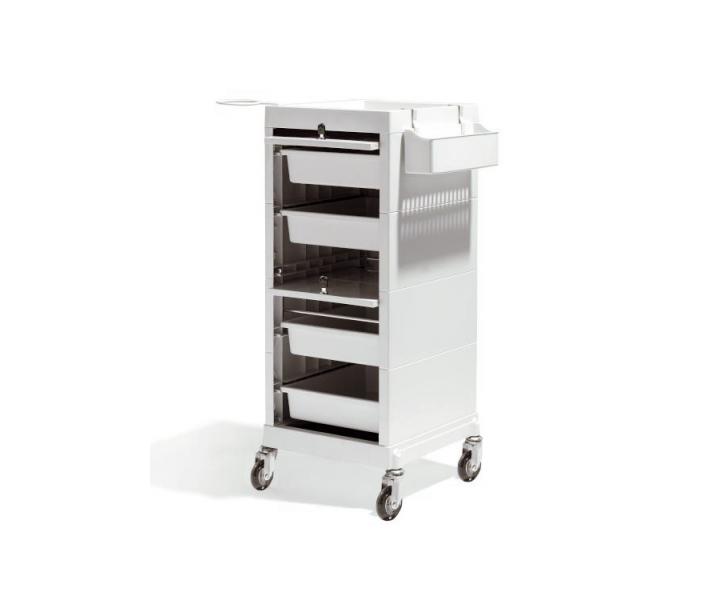 Kadeřnický vozík Sibel Discrete/Lock v krémové barvě je praktickým a nepostradatelným pomocníkem kadeřnického salónu. Má 4 praktické zásuvky, držák na fén a praktický držák nástrojů, který lze zasunout do rámu. Zásuvky lze uzavřít a uzamknout dvěma posuvnými dvířky s magnetickým uchycením. Tento vozík Vám poskytne komfort pro Vaši práci. Díky pojíz... více »