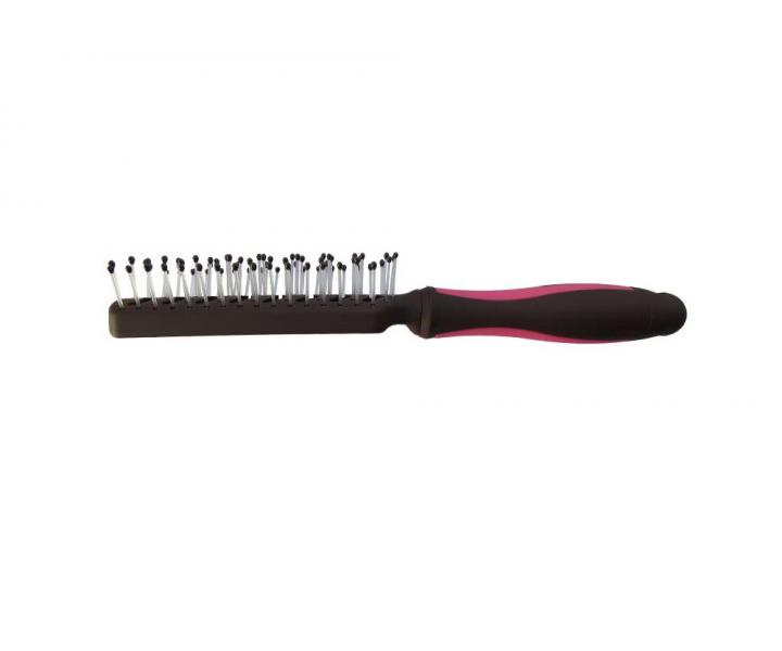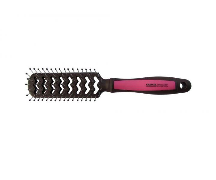 Kartáč Duko Magenta je vhodný na rozčesávání dlouhých a středně dlouhých vlasů. Zabraňuje nežádoucímu poletování a bez námahy rozčeše zacuchané vlasy. Nylonové kolíčky zakončené kuličkou jsou vsazeny do plastového těla. Kolíčky tak příjemně masírují pokožku při rozčesávání. Díky pogumované rukojeti neklouže z ruky a tím zaručuje klidné chvíle při rozčesávání.