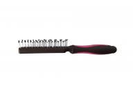 Kartáč Duko Magenta je vhodný na rozčesávání dlouhých a středně dlouhých vlasů. Zabraňuje nežádoucímu poletování a bez námahy rozčeše zacuchané vlasy. Nylonové kolíčky zakončené kuličkou jsou vsazeny do plastového těla. Kolíčky tak příjemně masírují pokožku při rozčesávání. Díky pogumované rukojeti neklouže z ruky a tím zaručuje klidné chvíle při r... více »