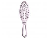 Plochý kartáč na rozčesávání vlasů Olivia Garden Holiday má zaoblené tělo, díky kterému perfektně kopíruje tvar vlasové pokožky a brání tak jejímu podráždění. Díky zdvojeným nylonovým štětinám kartáč vlasy perfektně rozčeše a kuličky na koncích štětin masírují pokožku hlavy. Kartáč je vhodný pro rozčesávání všech typů mokrých i suchých vlasů.