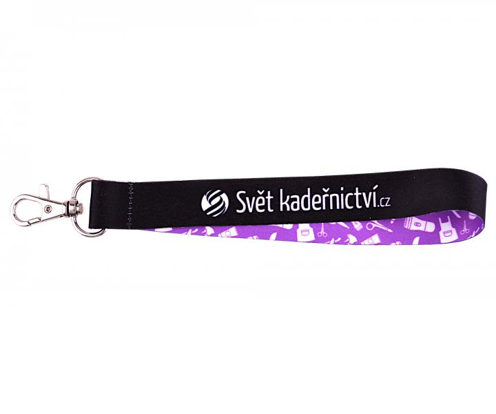 S klíčenkou Svět kadeřnictví.cz budete mít všechny klíče vždy na jednom místě. Klíčenka je vyrobena z umělého hedvábí, které je lehké a velmi příjemné na dotek. Díky praktické karabině ji snadno přichytíte k vašim klíčům, ale můžete ji připnout i jako stylový doplněk na batoh, kabelku nebo kosmetickou tašku. Vnitřní stranu klíčenky zdobí motiv kadeřnických potřeb.