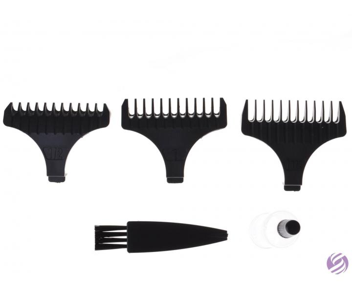 Konturovací strojek na vlasy Fox Volans s T-hlavicí vyrobenou z nerezové oceli o šířce 40 mm s výškou střihu 0,3 mm. Strojek má DC motor se 7500 ot./min. a Li-Ion baterii. Doba provozu až 240 minut při napájení 120 minut. Balení obsahuje nástavce 1,5 mm, 4,5 mm, 6 mm, čistící kartáček, olej a napájecí stojánek.