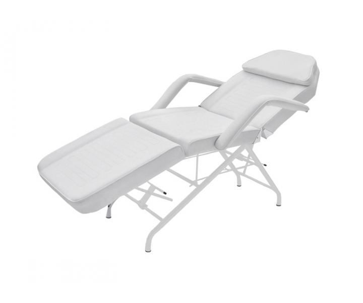 Krásné kosmetické lehátko se třemi nastavitelnými místy na sobě nezávislých. Kovová stabilní konstrukce s bilým lakováním.