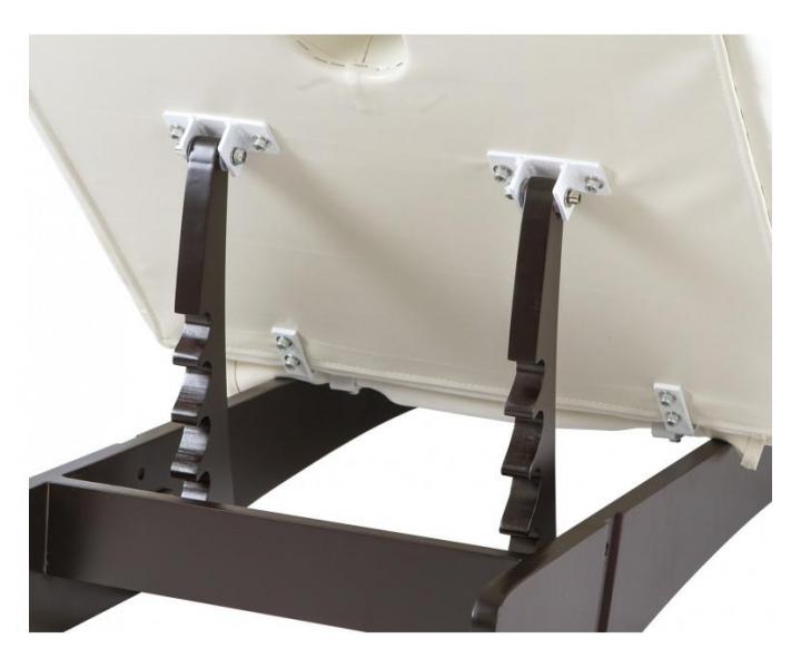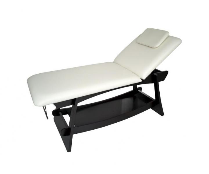 Kosmetické a masážní lehátko s nastavitelným sklonem opěrky zad. Lehátko má stabilní dřevěnou konstrukci, spodní deska může sloužit například pro odkládání ručníků.