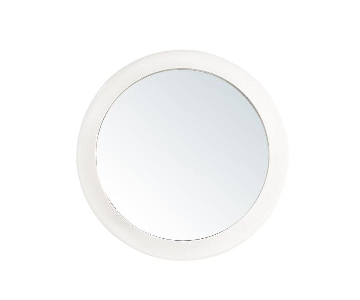 Kosmetické zrcátko na přísavky, má 5x zvětšovací stranu. Elegantní zrcátko je vyrobeno z kovu a průhledného plastu. Vlastnosti: - 5x zvětšovací strana - drží na přísavky - je z kovu a průhledného plastu Průměr zrcadlové plochy: 14 cm Celkový průměr: 17 cm