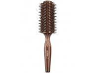 Kulatý dřevěný kartáč na vlasy s kančími a nylonovými štětinami. Kartáč je vyroben ze dřeva a má vyryté zdobení na rukojeťi. Kartáč je vhodný pro všechny typy vlasů. Kartáč má antistatický účinek a dodává vlasům lesk. Zabraňuje zacuchávání a nežádoucímu poletování vlasů. Je velmi šetrný k povrchu vlasu.