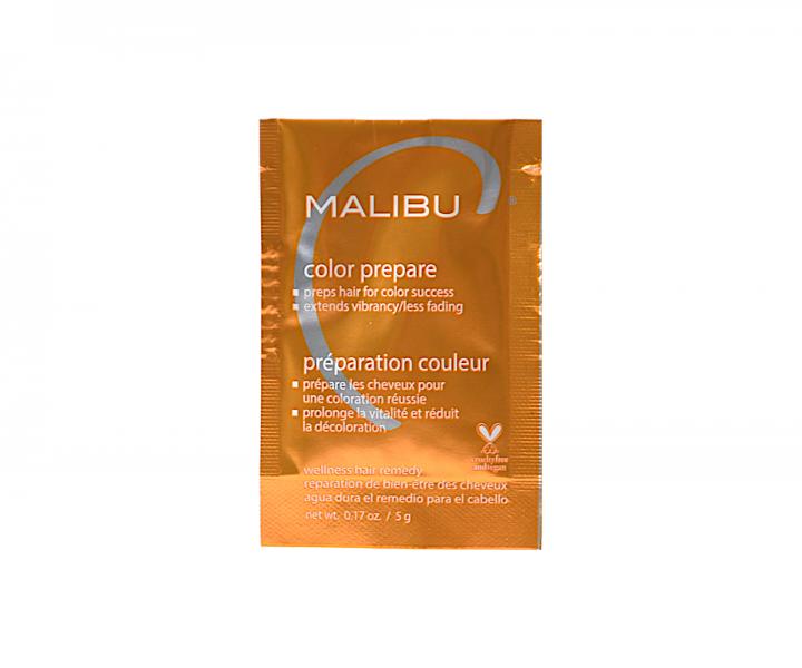 Kúra pro stálost barvy Malibu C Color Prepare šetrně, ale efektivně odstraňuje z vlasů nánosy minerálů, které způsobují vyblednutí barvy, špatné krytí a absenci lesku. Připravuje vlasy pro perfektní pokrytí nové barvy. Zvyšuje živost barvy, působí proti nežádoucímu zabarvení. Kúra zastavuje oxidaci, čímž předchází podráždění nebo popálení pokožky. Neobsahuje lepek, parfemace, parabeny, konzervanty a chlorid sodný.