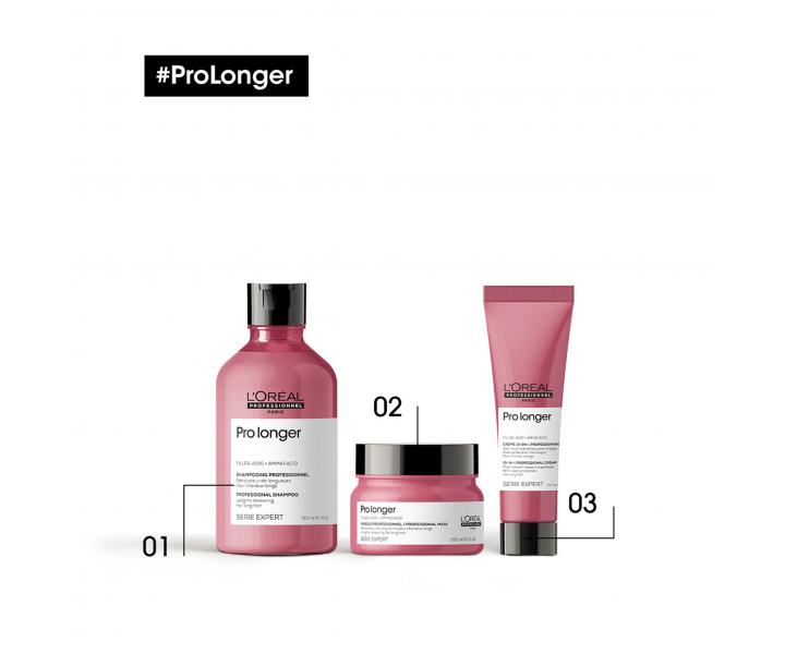 Maska pro obnovu délek L'Oréal Professionnel Serie Expert Pro Longer s patentovanou technologií poskytuje intenzivní posílení a vyživení vlasů. Složení obohacené o Filler-A-100 a aminokyseliny pomáhá okamžitě obnovit vlasové vlákno, a chrání ho před lámavostí. Vlasy jsou hebké a husté na dotek.