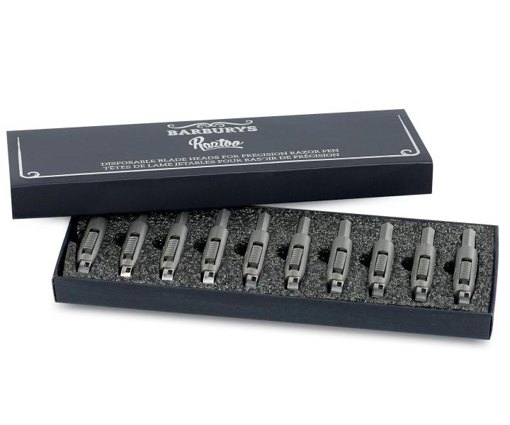 Náhradní jednorázové břity do holicího pera Sibel Barburys Raztoo. Balení obsahuje 10 jednorázových náhradních břitů.