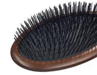 Profesionální oválný dřevěný kartáč na vlasy s nylonovými štětinami na pneuatickém polštářku. Kartáč má antistatický účinek a dodává vlasům lesk. Zabraňuje zacuchávání a nežádoucímu poletování vlasů. Je velmi šetrný k povrchu vlasu.