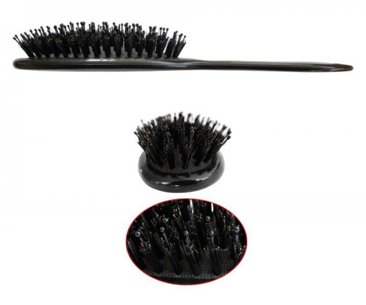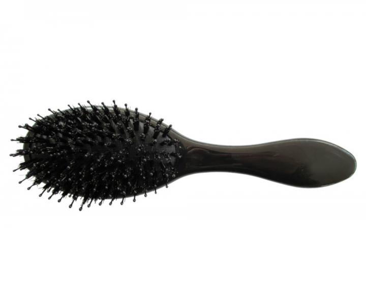 Kartáč s kančími a nylonovými štětinami Duko na pneumatickém polštářku. Vlasy se s ním ideálně uhlazují. Je vhodný pro každodenní péči o vlasy. Počet řádků: 18 Barva: černá Rozměr: 60 x 217 mm Štětiny: 50% měkký nylon + 50% kančí štětiny Vlastnosti: - kartáč s komfortním pneumatickým polštářkem - vlasy se s ním skvěle uhlazují - nylonové štěti... více »