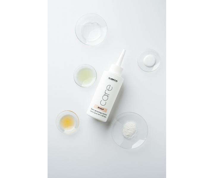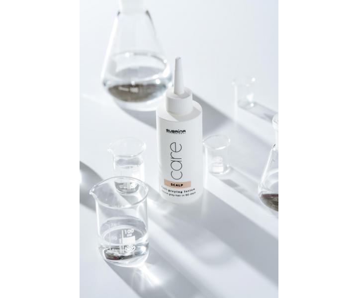 Subrina Professional Care Scalp Anti-Greying Lotion je inovativní přípravek, který pomáhá zpomalit, redukovat nebo zcela zabránit šedivění vlasů. Tento přípravek denní péče stimuluje přirozenou produkci melaninu ve vlasových folikulech, což vede k postupné obnově přirozené barvy vlasů, na rozdíl od běžných barev, které šediny pouze překrývají. Již po 1-3 měsících budou vlasy hladší, zářivější a mohou se objevit první známky přirozené pigmentace. Během 4-6 měsíců šediny postupně ustupují, vlasy získávají zpět svůj přirozený odstín a vypadají mladistvěji a zdravěji. Po 6 měsících je přirozená barva intenzivnější, šediny jsou minimální a vlasy jsou silnější, vitálnější a plné života. Lotion je vhodný pro všechny typy vlasů, včetně barvených, a je ideální pro muže i ženy, kteří chtějí přirozeně a efektivně obnovit svoji původní barvu vlasů. Díky přírodním složkám je šetrný a bez vedlejších účinků, což umožňuje snadné zařazení do každodenní rutiny. Klíčové složky, jako jsou posilovače melaninu, antioxidanty a vyživující látky, chrání vlasy před poškozením způsobeným vnějšími vlivy a znečištěním, zatímco je zároveň posilují. Složení je veganské.