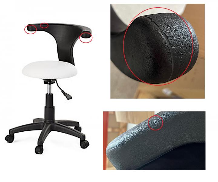 Zboží má drobné kosmetické vady - vadu a otlak na opěradle. Vady nemají vliv na funkci a používání pedikérské židle.